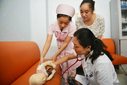 为提高护理人员的急救水平,提高自身的护理意识,迎接医院三甲评审复查工作,9月2日上午在护理部向亚利老师的指导下由儿科门急诊及儿童保健中心策划上演了一场婴儿“呛奶窒息复苏”的急救模拟演习。