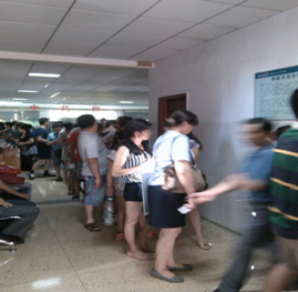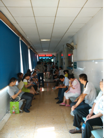 随着医院快速发展,门诊病人与日俱增,抽血室的面积不到20平米,其中等候室约10平米,每天病人站着排队等候在走廊里,形成抽血长龙,与检验、缴费三队交叉,很多病人不知所从。