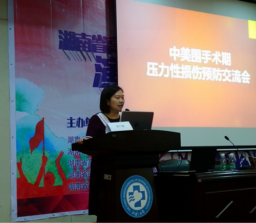 8月30日晚,由湘雅三医院举办的“中美手术室压力性损伤预防研讨会”在外科楼2楼会议室举行。本次研讨会有幸邀请到了来自美国Cone Health医疗集团失禁、伤口、造口护理师(CWOCN)Melody Austin女士前来授课。