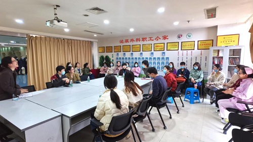 会议伊始,根据“护理科研小组”迎新传统,副组长郑凤对加入中南大学湘雅三医院的新鲜血液表示热烈欢迎,,邀请新成员们进行自我介绍,并举行了送花仪式。