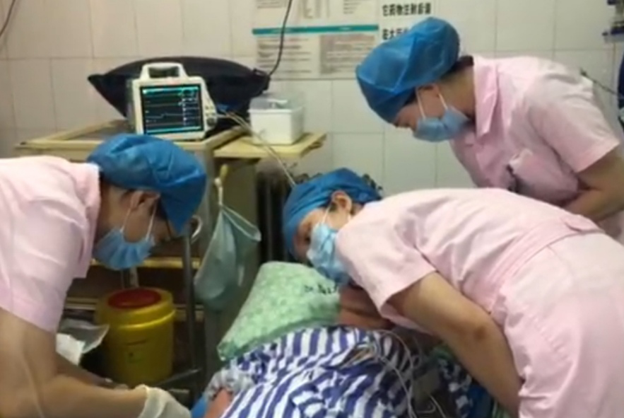 隆益香护士长介绍了此次应急演练的安排及参加演练护士的基本情况。随后进入了紧张的应急演练。患者张某注射青霉素后留观期间出现过敏性休克。当班护士立即启动突发事件应急预案,迅速建立静脉通路,实施心肺复苏、电除颤等,并紧急启动院内应急救治。医护分工明确、团队配合良好、抢救工作紧张有序,患者转危为安。
