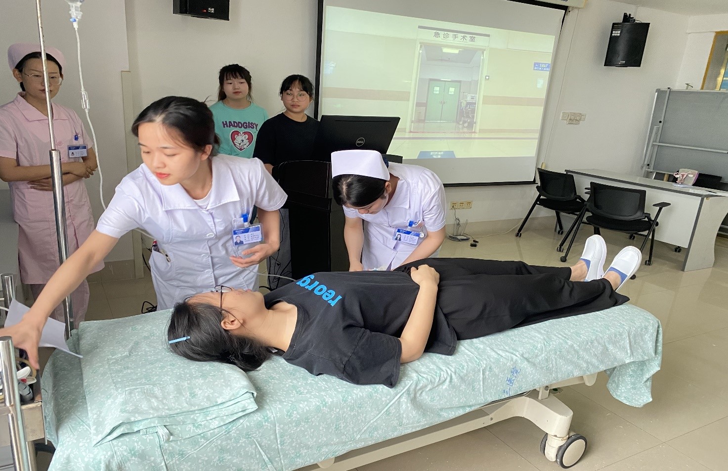 7月30日下午,中南大学湘雅三医院妇科21病区在外科楼11楼示教室开展“角色扮演情景模拟教学”活动,医院护理教研室主任毛平、副主任黄辉,21病区护士长戴婵媛及全体护理带教老师参加,科室总带教刘欢欢主持。活动旨在进一步丰富临床带教形式,让学生在高度仿真的情境中获取知识,从而提升护理实习生学习效果。