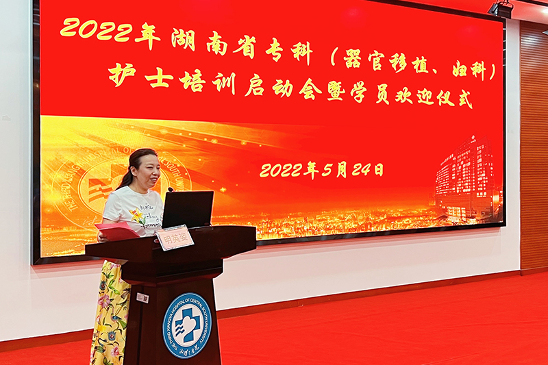 明英姿主任首先代表器官移植专科致辞。她对学员们的到来表示热烈欢迎,在介绍移植专科特色的同时,充分肯定了护士在临床护理、护理科研、护理管理以及疫情防控方面的高胜任能力。她指出,医护是一个整体,学科要继续发展,应协同学习、共同进步,此次专科护士培训不仅是专业知识上的培训,更是为大家提供了相互学习、交流的平台。