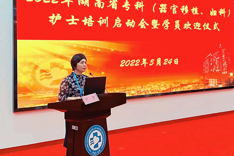 5月24日上午,2022年湖南省器官移植科、妇科专科护士培训启动会暨学员欢迎仪式在中南大学湘雅三医院外科楼二楼学术报告厅顺利召开。护理部主任严谨,护理学教研室主任、器官移植基地负责人毛平,器官移植科主任明英姿,妇科副主任易水晶,妇科基地负责人卜平元,科护士长吴小霞、龚妮、肖涛以及部分专科师资和专科学员参加。会议由护理部副主任谢建飞主持。