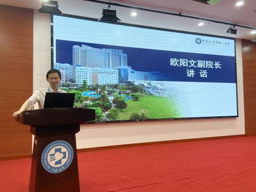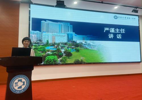 6月15日下午,中南大学湘雅三医院护理部在外科楼二楼学术报告厅举行第十二届护理“安全教育月”之老年患者谵妄管理专题培训会。医院党委委员、副院长欧阳文出席会议,特邀麻醉科廖炎博士做专题授课,护理部全体成员、全体护士长参加会议,科护士长龚妮做主持。