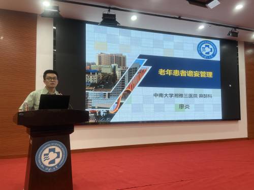 廖炎以《老年患者谵妄管理》为题进行专题培训,他结合临床案例,从术后谵妄流行病学和危害、术后谵妄的危险因素、临床表现、诊断与鉴别、预防与治疗五大方面深入浅出、全面细致地讲授了国际最新的谵妄管理知识,为临床护理工作提供了新的实践路径与思考。
