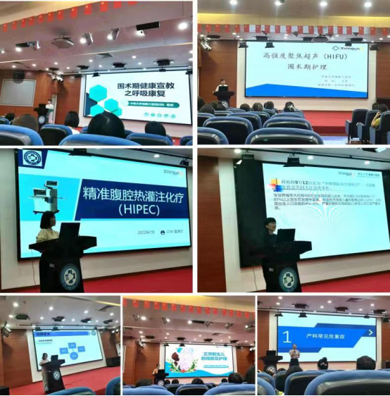 本次健康宣教预讲由7位授课老师按照抽签顺序依次展示。妇科21W陈妍主讲“围手术期健康宣教”、妇科19W王莹主讲“高强度聚焦超声围手术期护理”、妇科22W夏清花主讲“精准腹腔热灌注化疗”、产房周安慧主讲“预防出生缺陷”,妇科22W廖昕宇主讲“妇科日间手术的专业化管理”,产科23W周秀主讲“正常新生儿的观察与护理”,产科23W钱湘子主讲“产科危重症识别和处理”。本次健康宣教预讲受众为患者及护理人员,授课老师们各具特色,采取多种授课方式,宣教内容专业实用、精彩纷呈。