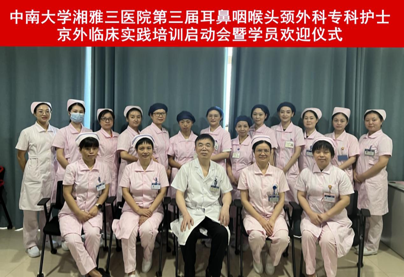 8月15日上午,中华护理学会第三届耳鼻咽喉头颈外科专科护士京外临床实践培训启动会暨学员欢迎仪式在中南大学湘雅三医院外科楼十三楼示教室召开,耳鼻咽喉头颈外科主任谭国林、护理部副主任钟竹青受邀出席,来自全国各地的7位学员参加本次培训。