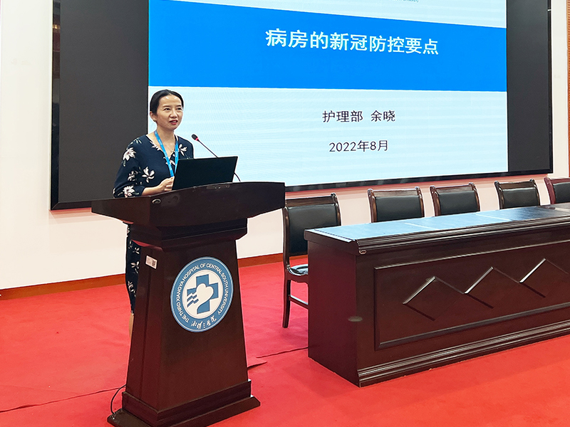 科护士长余晓为全体新入职护士开展2022届新入职护士首场培训讲座《病房的新冠肺炎防控要点》。她强调,面对疫情严峻形势,新入职护士要紧密结合防控最新要求,牢记落实“四查一问一更新”、“五知道”、“五管理”等防控要点,以帮助新入职护士在疫情之下尽快适应新岗位,顺利融入临床工作环境。