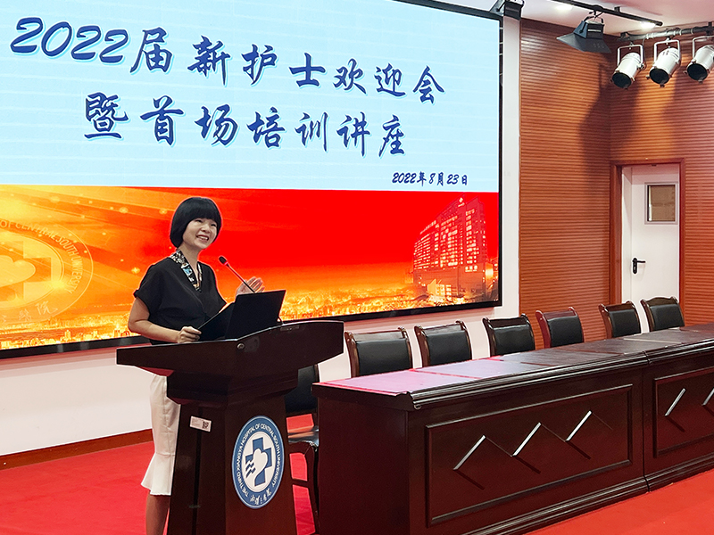 8月23日下午,中南大学湘雅三医院护理部在外科楼2楼学术报告厅举办2022届新入职护士欢迎会暨首场培训讲座,护理部全体成员、2022届新入职护士、2021届优秀新护士代表等50余人参加。会议由护理部副主任谢建飞主持。培训旨在引导新入职护士尽快适应新环境及新角色,树立正确的人生观及职业观。
