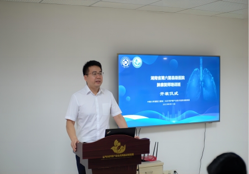 9月13日,湖南省第六期县级医院肺康复师培训班开班仪式在中南大学湘雅三医院科教楼610室举行。湖南省卫生健康委医政医管处主任朱应东,项目负责人、医院护理部主任严谨,呼吸与危重症医学科护士长杨阳,内科ICU护士长唐迎际,肺康复师班班主任朱素翠,教师代表及全体学员参加,会议由护理学教研室副主任易琦峰主持。
