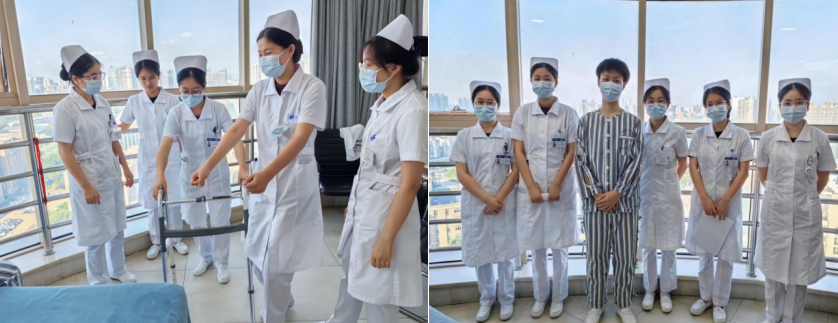 活动中,廖红兰老师向大家提问:使用助行器行走时应先迈出健肢还是患肢?小组成员针对此问题,展开了激烈讨论。通过理论分析和情景模拟等多种方式,最终得出结论:先迈患肢可以减少患侧肢体负重而减轻手术切口疼痛。活动过程中,组员团结友爱,配合默契,展现了出色的语言组织表达能力和丰厚的知识储备,也明白实践才是检验真理的唯一标准。