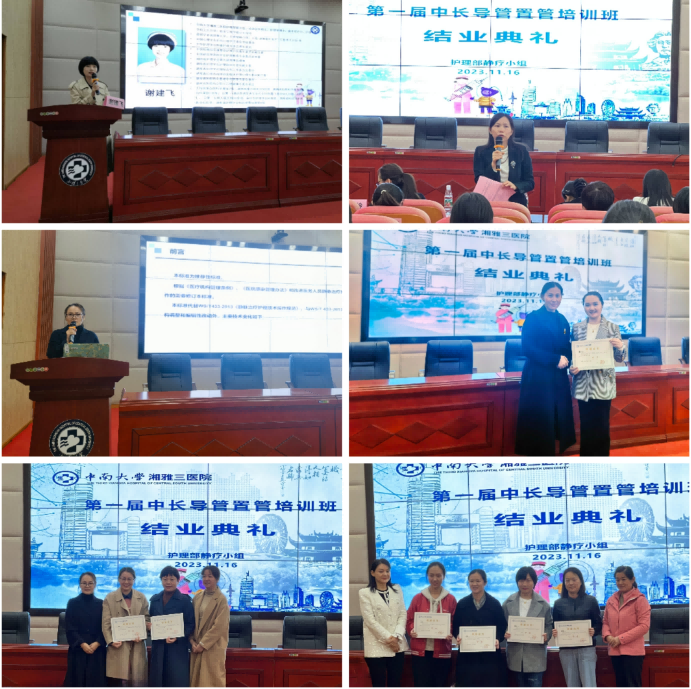 11月16日,湘雅三医院护理部静疗小组在科教楼三楼会议室举办中长导管培训班结业典礼,会议内容涵盖了案例竞赛及理论授课,并颁发资质证书,护理部副主任谢建飞致辞,护理教研室主任毛平、外科片区科护士长龚妮、护理部静疗小组组长王玲、副组长阮春红、副组长孙林丽及5W儿科护士长蔡骞担任评委。获得中长导管资质证、PICC再认证的学员及各临床科室联络员、静疗小组核心成员共70余人参加会议。