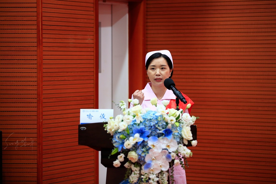 院长江泓代表医院向所有护理同仁送上诚挚祝福。他高度认可护理团队在医院高质量发展做出的贡献,肯定了新湘雅护理在科研教学、学科发展方面获得的成绩。他希望医院护理工作一要以人民健康为中心,弘扬南丁格尔精神;二要切实关心关爱护士队伍,营造尊重护士氛围;三要加强护理队伍建设,打造护理文化品牌。医院也将进一步积极贯彻落实习近平总书记重要讲话精神,关心关爱一线护理人员。