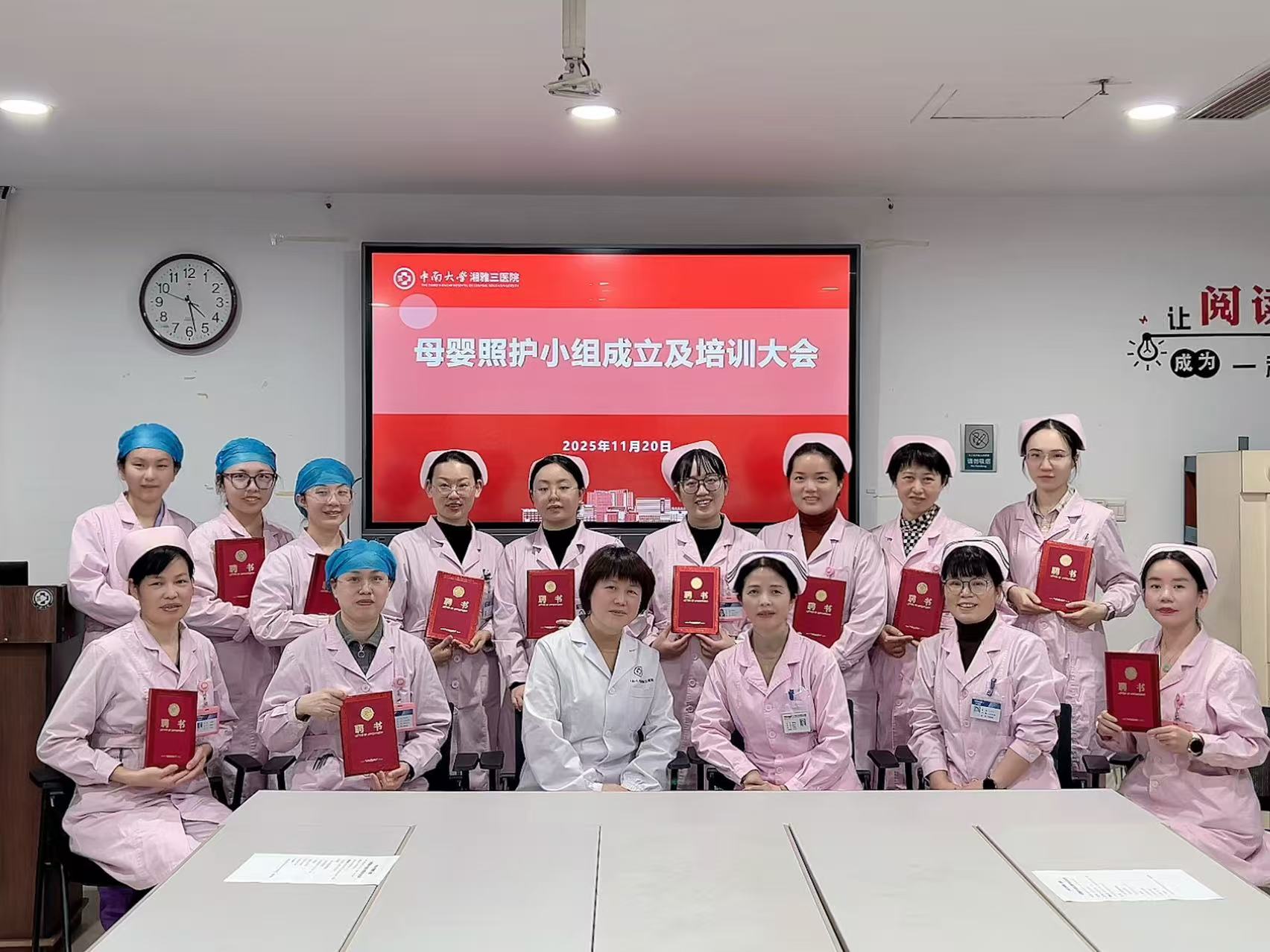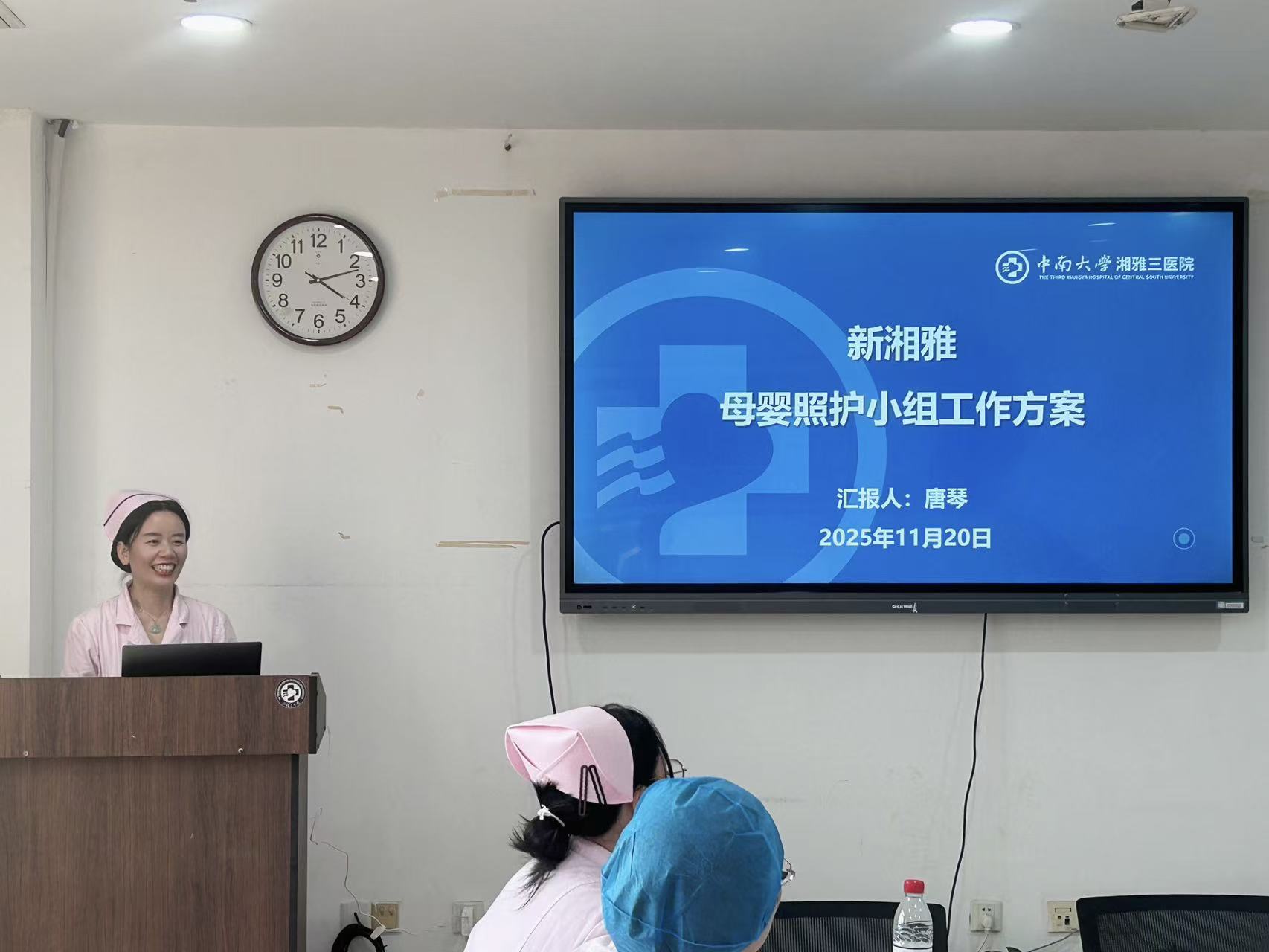 11月20日下午,中南大学湘雅三医院母婴照护小组成立暨培训大会在外科楼12楼示教室举行。产科副主任程春霞、护理部副主任易琦峰及母婴照护小组全体成员共同出席,护理部科护士长卜平元主持。
