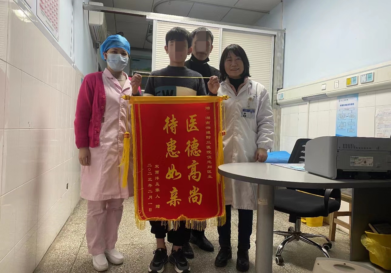 十二年过后的今天,又是一个春天。宋先生带着健康成长的“宋可爱”重返湘雅三医院儿科,找到了那位“救命恩人”伍志翔医生,将写有“医德高尚,待患如亲”的锦旗郑重地送到了伍志翔医生的手中,表达了他们最真诚的感谢——感谢湘雅三医院儿科医护团队精湛高尚的医术医德和细心温暖的优质护理服务。