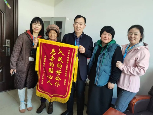 无独有偶,2023年11月16日一大早,总会计师费云的办公室迎来了一位特殊的客人,一位70多岁的阿姨,她紧紧地握着费云的手说,“感谢领导,培养出了这么好的员工,能够真正地为我们患者着想,真是我们患者的贴心人!”