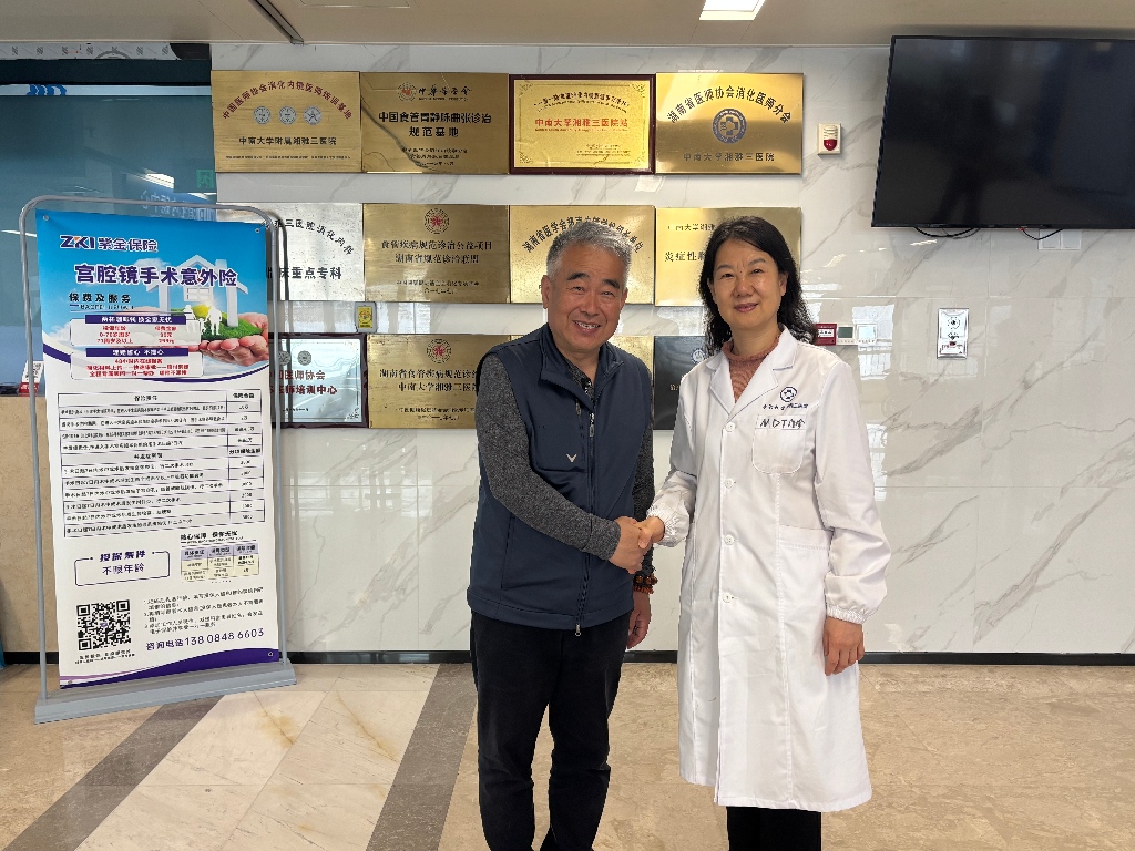 这位来自天津的患友,为了这一刻的重逢,他跨越了1200多公里,坐了整整8个小时的高铁。八年前,老张(化名)的人生曾因一张诊断书而停摆。那时,他在天津被查出食管近贲门处生长着一个巨大的黏膜下肿物。这不仅是身体上的“定时炸弹”,更是心理上的巨大阴霾。在辗转天津多家医院后,他听闻当地一家大型三甲医院正举办全国性的内镜演示大会,而他幸运的遇到了时任中南大学湘雅三医院消化内科主任的王晓艳教授。