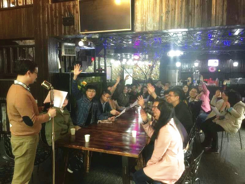 第二环节你来比划我来猜,两人一组,抽到题目后,一人扮演病人的症状来看病,但是不准说出病的名称,另外一个同学扮演医生在规定的时间内诊断出是什么病。例如,一个同学抽中胆管炎的题目,他就要扮演出charcot三联征(腹痛、寒战高热、黄疸),另外一个同学要根据同伴的表演诊断出胆管炎为胜利,十分钟之内哪个组合正确诊断出最多的病症为胜利。游戏也进展的越来越激烈,通过几轮的较量,最后马骁和次央组合获得最后的胜利。
