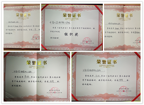 据悉,本次比赛由《当代护士》杂志社举办,旨在更好的培养和使用护理人才,进一步推进护理事业的发展,参加此次比武的都是来自于全国各级医院、护理院校选拨推荐的优秀选手。我院选派的三位选手——儿保中心黄柯、健康管理中心欧阳斌、血液净化中心王欢,均为临床一线护理教师。三位选手紧密结合临床护理工作选题,赛前精心准备,反复预讲,在比赛现场沉着冷静,以丰富的知识、精炼的讲授、优雅的台风获得了评委老师的一致好评。其中,王欢老师的全英文教学更是获得了满堂喝彩。经过近十个小时的激烈角逐,黄柯、王欢分别获得特等奖,欧阳斌获得一等奖和“最佳表现力”奖。同时,我院获得此次活动“最佳组织奖”荣誉。
