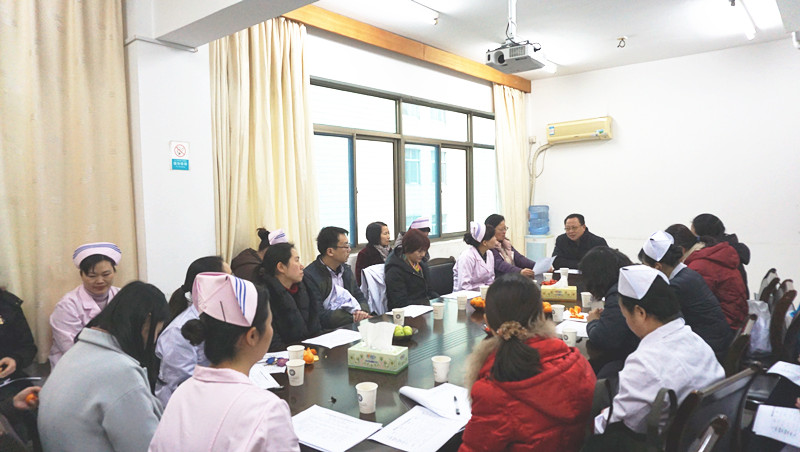 毛平主任代表护理教研室针对湘雅护理学院实习带教情况及学生综合表现进行了汇报;护理部丁四清主任对检查专家表示欢迎,请专家就考核中发现的问题进行反馈与指导。唐四元院长对护理教研室与护理部对湘雅护理学院教学工作的支持表示感谢。他指出,在2017年12月教育部学位与研究生教育发展中心正式发布的全国第四轮一级学科整体水平评估结果中,59所具有护理学一级学科博士或硕士授权的参评高校里,中南大学护理学获评A+,位居学科排名第一档(前2%);该成绩的取得也离不开各附属医院护理人员的心血与智慧。湘雅三医院的护理临床教学与护理科研近年来都获得显著成绩,得到同学们的喜爱与肯定。唐院长也指出中期考核的目的在检查学生的实习情况,是检验学院及医院老师教学水平的重要手段,要求考核老师及时发现问题、收集意见,实现理论与临床的有效结合。