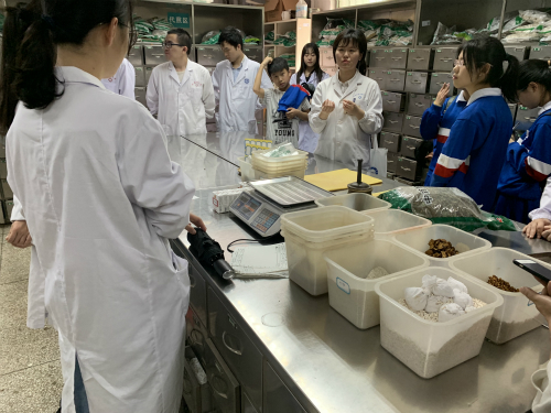 最后张婷老师带领同学们参观了湘雅三医院中药房,给同学们简单介绍了中药的“四气五味”,中药治病讲求的“天人相应,顺应自然”原理等知识。同学们现学现用,分类辨别了部分中药饮片,还有同学自告奋勇品尝一些性味突出的药材。