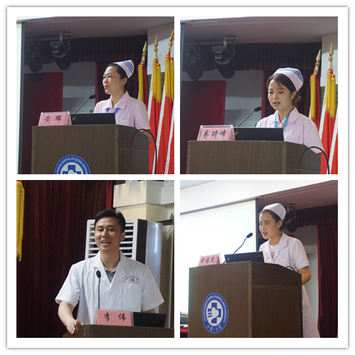 护理教研室副主任黄辉首先致辞,对全体学员和规培护士表示欢迎,对临床各专科授课老师表示衷心感谢。她强调目前专科护士对于护理行业的重要性,特别是危急重症专科的广泛应用,指出了此次“重症监护专科护理实习”目的与意义,同时对参加培训的同学给予厚望。ICU教学骨干,呼吸治疗师、肺康复师李伟代表全院重症监护科室带教老师给学生加油打气,他通过自己实习与工作经历的彷徨、困惑及突破,让大家看到专科护士的光辉前景,希望大家能坚持自我,不忘初心;努力奋斗,坚持不懈;不断积累,全面提升。益阳医专大队长黄海燕代表重症监护专科护理实习生表态,全体学员们将珍惜机会,端正态度;尊重前辈,牢记誓言;不忘初心,砥砺前行。