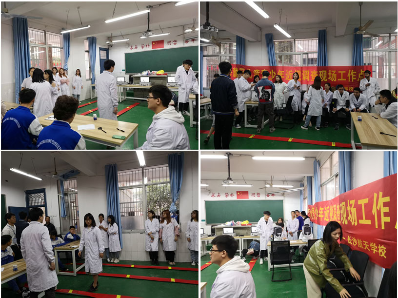 10月14日,中南大学湘雅三医院眼科教研室主治医师高莉茉组织2016级临床附三大班六组同学走进岳麓区中小学校,协助眼科进行“岳麓区儿童青少年近视调查”。本次课外教学活动旨在让同学们了解目前青少年近视状况,指导中小学生科学用眼,培养中小学生良好的用眼卫生和用眼习惯,并协助开展近视防控知识宣传教育。