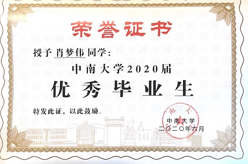 11级八年制博士生刘伟琳于2017-2019年在匹兹堡大学Hillman Cancer Center进行为期两年的公派留学交换,在匹兹堡大学肿瘤外科主任Dr. Bartlett实验室从事以溶瘤病毒为基础的实体瘤免疫治疗的研究。在校期间成绩优异,绩点排名专业第五,多次获国家奖学金,在美国留学期间,发表SCI论文3篇,最高影响因子8.67,中文论文3篇。肖梦伟博士在校期间获得中南大学博士研究生国家奖学金等多项奖励,一直跟随王晓艳教授从事炎症性肠病与肠道微生态的研究,主持过多项省、校级科研课题,独立获得科研经费近5万,以第一作者身份发表了2篇SCI论文,最高影响因子5.251。