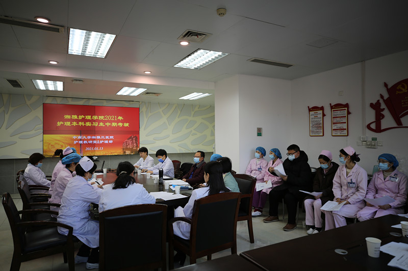 1月13日、21日,中南大学湘雅护理学院院长唐四元,副院长李映兰、李乐之等专家带领考核组来到湘雅三医院,对2017级护理本科实习生23人、2019级研究生50人进行了为期2天的中期考核。湘雅三医院护理部与护理教研室全体人员、相关科室护士长与教学组长参加,护理教研室副主任黄辉主持考核部署会。