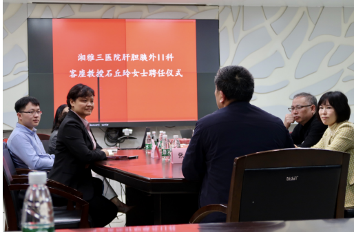 2021年3月24日,中南大学湘雅三医院肝胆胰外II科客座教授聘任仪式在远程会议中心举行,授聘临床流行病方法及医学统计学专家石丘玲女士为客座教授。仪式由人事科主任雷俊主持。