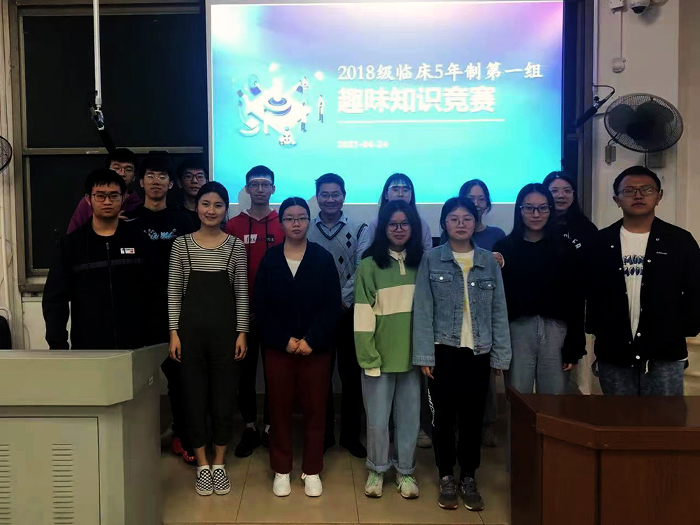 4月24日上午,为加强师生交流,增进彼此感情,巩固所学知识,2018级临床五年制1组辅导员李国安老师和同学们在福庆楼T307教室举办了趣味知识竞赛活动。