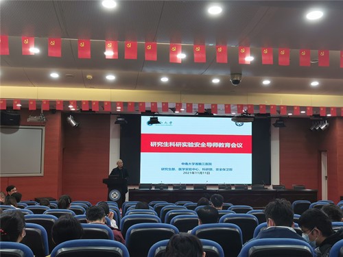 朱晒红指出,研究生科研实验安全是保障各项教学科研活动正常进行的生命线,实验室安全工作不容小觑。他同时强调,导师作为研究生培养工作第一责任人,应严格履行实验室安全准入制度,加强对研究生安全意识及技能培训,特别在高风险实验开展之前,导师要针对实验安全及环保事项给予充分提醒,实验室的各项安全教育、责任一定要落实到人。