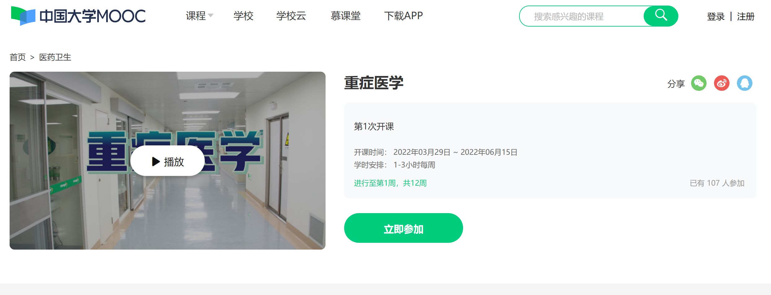 3月30日前后,中南大学湘雅三医院重症医学科主任何智辉教授等人制作的中南大学《重症医学》课程正式在慕课平台上线。