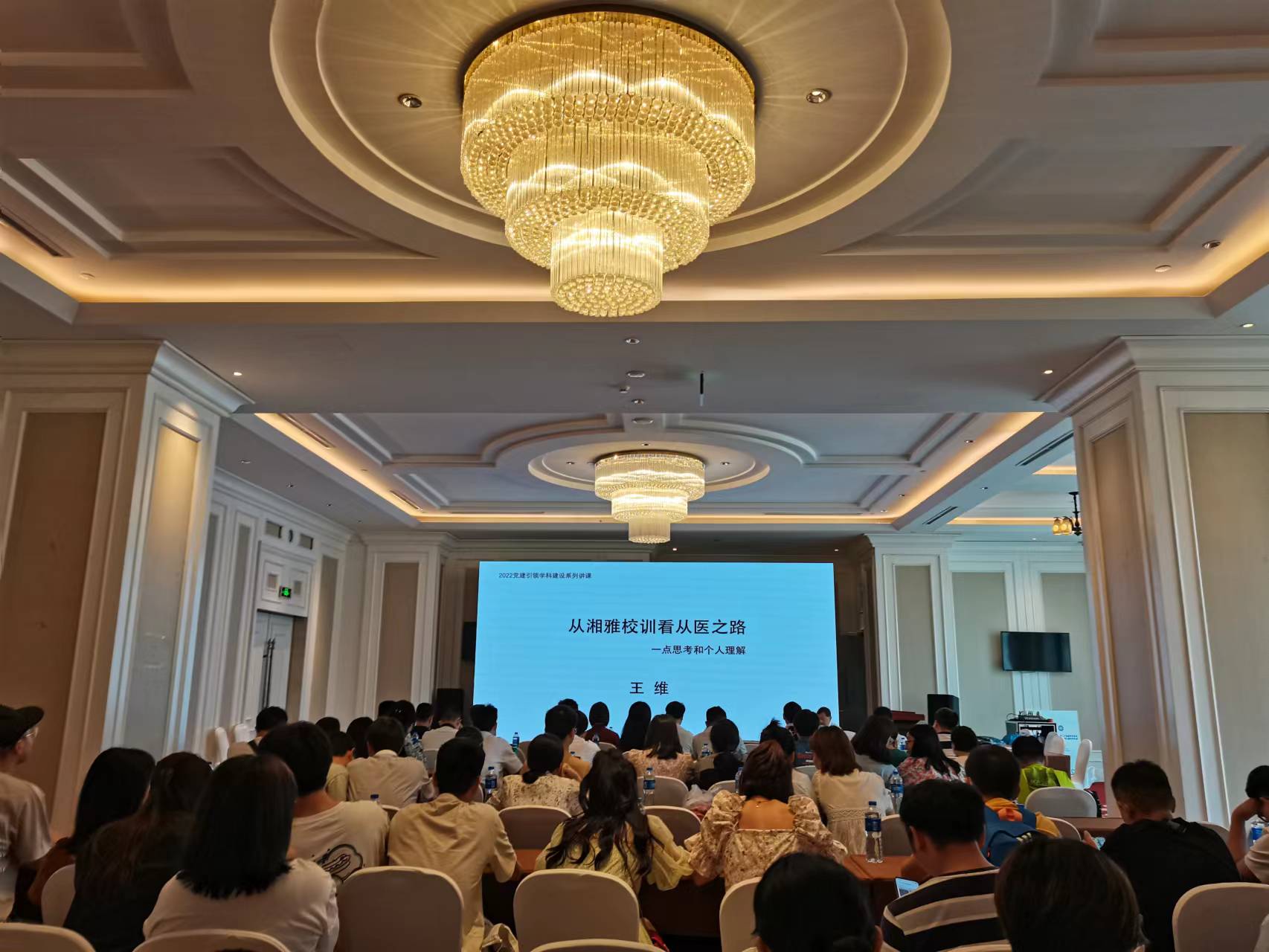 会后,放射科专业基地指导老师、首席专家王维教授还为学员们开展了题为“从湘雅校训看从医之路”的专题讲座,鼓励诸位学员弘扬湘雅校训,立足于岗位胜任力培养,在专业知识和职业素养上一起下功夫,力争早日成长为一名合格的临床工作者。