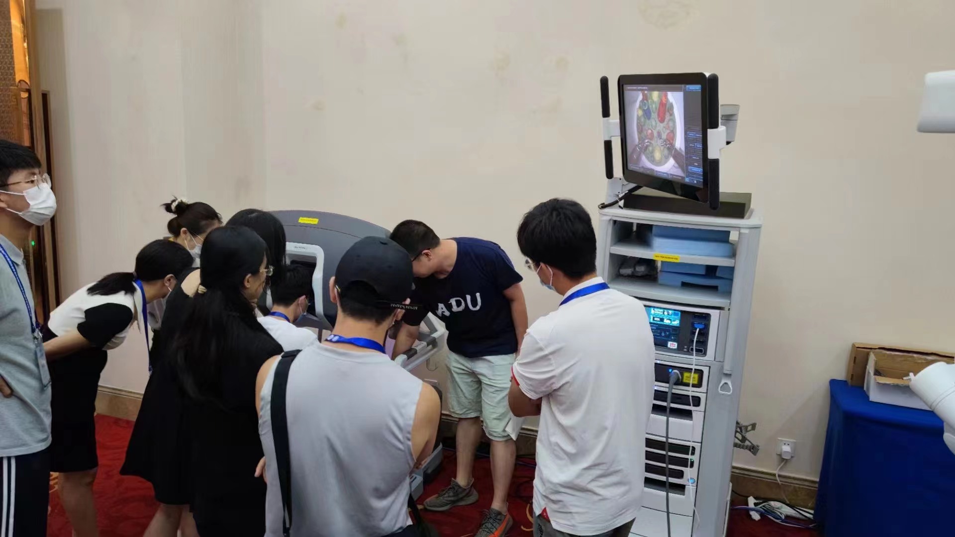 在听课接收前沿知识的同时,贺斯黎、杨茜主治医师还带领同学们体验了达芬奇机器人手术系统。作为目前世界上领先的微创外科手术系统——达芬奇手术机器人系统技术打破了传统手术的局限,开始普及应用到临床手术中,相对于其他手术方式,具有极大的优势。总计20余位同学先后体验了达芬奇机器人手术系统,同学们形容其操作极其“丝滑”。