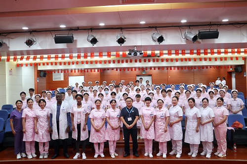 曹科对来自塞拉利昂中塞友好医院、国内5个省份的进修护士表示热烈欢迎,对经过报名、资格初审、理论考核、技能考核和综合面试等层层选拔录取的25位护理规培学员表示祝贺。他介绍了医院文化、医疗特色与教学科研成绩,充分肯定了护理队伍为医院发展作出的贡献。他鼓励所有规培和进修学员积极响应医院党委“三学、一思、一推进”的号召,不忘初心、牢记使命,以问题导向进行学习,在培训期间从人文素养、专业能力、发展能力各个方面培养高素质的专业素养,保障患者安全,促进护理质量的稳步提升,为患者、为自己、为单位交上一份满意的答卷。