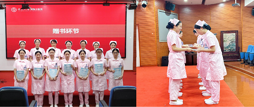 随后进行了赠书仪式,规培导师们将《护理规范化培训手册》赠予了新学员,希望大家都能学有所成。学员们也纷纷向老师回礼,深鞠一躬表示感谢。