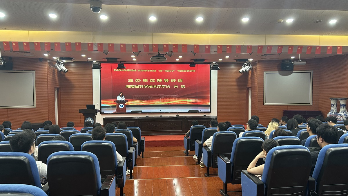 活动由湖南科技大学党委副书记谢慧、湖南科技大学党委委员、副校长王进主持,湖南科技大学党委副书记、校长蒋丽忠,以及湖南省科学技术厅朱皖出席活动并致辞。活动邀请了湖南科技大学万步炎教授、国家自然科学基金委员会吴济民副研究员、大连理工大学李伦教授以及中国科学院文献情报中心袁军鹏教授做专题宣讲。本次宣讲活动采取“线上+线下”相结合的方式,湖南省科学技术厅、湖南省教育厅、湖南省科学技术协会及湖南省科学技术事务中心的代表领导以及湖南科技大学的师生在主会场参会,全省24所高校和科研院所的4万多名今年新入学的博士、硕士研究生在线上线下分会场同步参会。