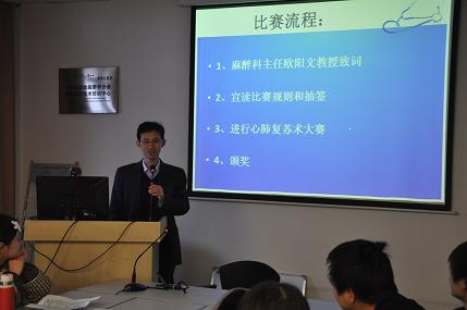赛前,麻醉科主任欧阳文教授讲话指出,“心肺复苏”技能操作比赛是将理论知识和临床工作紧密结合的有效载体,是打牢基本功和夯实动手能力的强效工具,更是明确教与学关系的重要途径。他要求同学们在实习阶段要有目的去学习,怀着感恩的心去学习,用实际行动回报老师。他希望选手们赛出水平、赛出风格,努力做到精益求精,并认真听取评委老师的意见和建议,为今后的实习工作打下坚实的基础。
