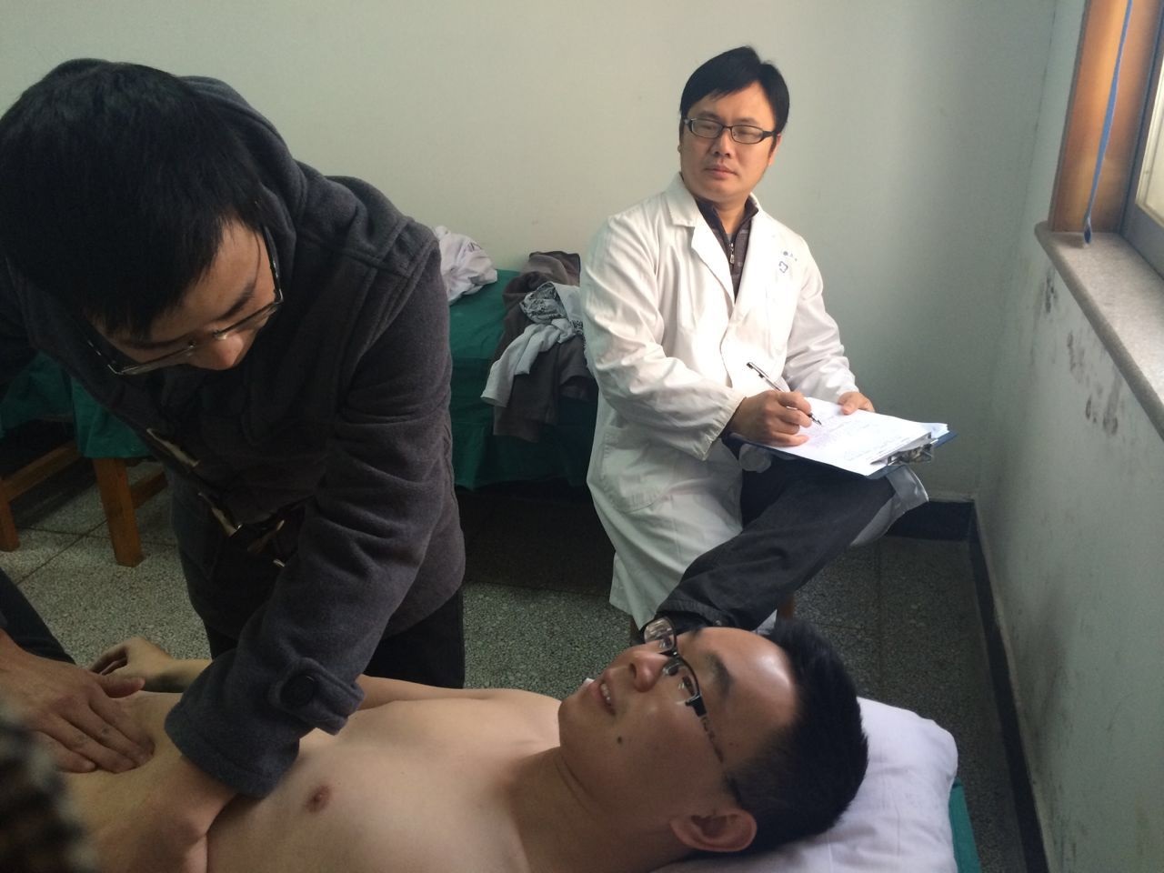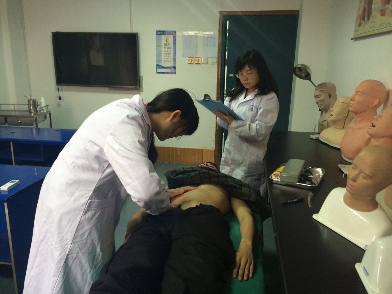 各位监考老师对考生操作过程中出现的错误进行了耐心的指正,比如说听诊器拿起时应干脆利落,脊柱棘突及椎旁按压痛时个别同学的手法还需要进一步完善等。很多同学反映:“其他同学操作中出现的问题就是我可能出现的问题,老师们的指出相当于给我打了支强效疫苗。”