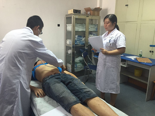 6月23日及6月27日下午,内科教研室分别组织2012级八年制及2012级五年制留学生(全英文班)、2012级临床医学五年制学生参加诊断学技能操作考核竞赛。