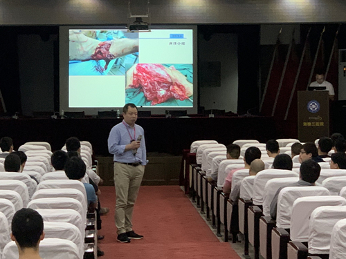 病例讨论主要由刘耕砚主治医师主讲。他结合本院相关病例,就目前关于开放性骨折的分型、治疗目标、原则、重点和细节进行了详细清楚地阐述,让参会者对于开放性骨折有一个全面的认识。同时,刘耕砚主治医师也热情地介绍了骨科创伤组各位教授及团队,展示了湘雅三医院骨科创伤组医师的良好风貌及医疗水平。