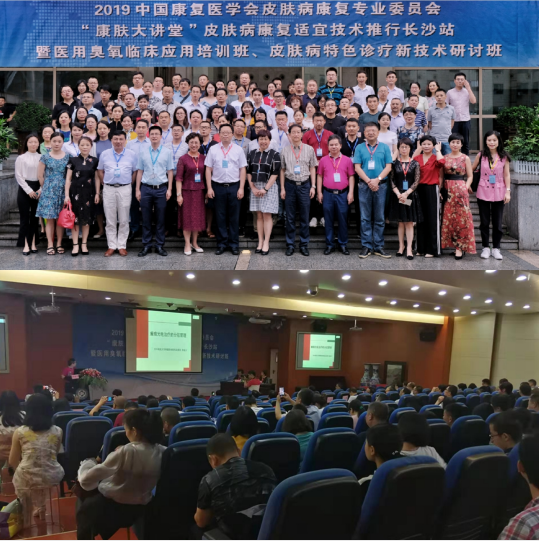 6月21-22日,由中国康复医学会皮肤病康复专业委员会、湖南省医师协会皮肤科医师分会主办,中南大学医用臭氧研究中心、中南大学湘雅三医院皮肤科承办的"2019中国康复医学会皮肤病康复专业委员会'康肤大讲堂'皮肤病康复适宜技术推行长沙站暨医用臭氧临床应用培训班、皮肤病特色诊疗新技术研讨班”在中南大学湘雅三医院外科楼二楼学术报告厅召开。中南大学党委常委、副校长陈翔教授,中国康复医学会皮肤病康复专业委员会候任主委、上海市皮肤病医院王秀丽教授等出席大会开幕式并致辞。