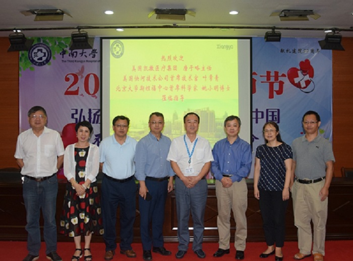 9月4日下午,湘雅杰出海外校友——美国凯撒医疗集团主任唐子略、北京大学斯坦福中心首席科学家姚小明博士和美国快河技术公司首席技术官叶常青先生一行三人来访湘雅三医院,就“大数据时代下的医学发展”在外科楼二楼学术报厅举行专题讲座。讲座由湘雅三医院党委委员、副院长邓云龙主持,国际合作与交流办、毕业后医学教育办、研究生部联合组织。来自行政管理、临床医技、住培的近百人参与讲座。