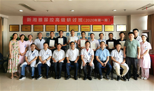 周会结束后,由王龙和汤进为尿控研讨班学员颁发结业证书。中南大学湘雅三医院泌尿外科于2006年成立尿控亚专科,目前该亚专科主要由汤进副教授负责,重点关注前列腺增生及尿失禁的诊断和微创化治疗,同时涵盖神经源性膀胱、膀胱过动症等疾病的诊治,开展了各类前列腺增生症的微创外科手术。针对女性压力性尿失禁,开展了如TVT-O术、TVT-A术等微创手术,年均完成手术量达100余台,成功率达98%以上。