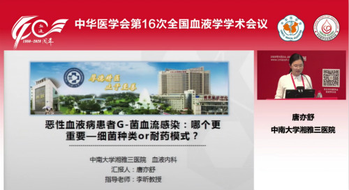 湘雅三医院党委委员、副院长,血液内科教授吕奔在“知名学者继续教育论坛”上作题为“感染与DIC”的特邀报告,将最新进展与研究成果分享给全国血液届同仁,吕奔在脓毒症、DIC领域开展了一系列的原创性研究并取得了丰硕成果,得到了国内外同行的高度认可。刘竞教授应邀主持骨髓瘤组、淋巴瘤组、白血病组三个专题报告。血液内科主任李昕应邀主持移植组和青年委员组专题报告。来自吕奔课题组的杨新宇博士后在出凝血学组作“靶向抑制Caspase-11策略在革兰阴性细菌脓毒症DIC防治中的作用”的报告。来自李昕课题组的唐亦舒医师及张畅医师分别在感染学组作“恶性血液病患者G-菌血流感染:哪个更重要—细菌种类or耐药程度”和“预测模型分层指导下初始不恰当治疗对恶性血液病患者革兰阴性菌血流感染的影响”的论文报告,报告阐述了血液病患者血流感染的危险预测模型及抗感染的选择策略,为临床实践提供了科学的指导。来自刘竞课题组的成倩医师和来自李昕课题组的刘蕊医师的研究课题“多发性骨髓瘤中外泌体miR-21促进肾脏上皮细胞向间质转化的作用及机制研究”和“对比CAR-T细胞治疗白血病中枢浸润及淋巴瘤中枢浸润的有效性”分别被选为大会壁报进行展示。
