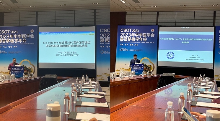 王维教授团队的马小倩副教授、聂唯副教授、陈程医师及徐玉芝技师也应邀在异种移植专题会场及胰岛移植专题会场就本团队在异种移植供体的基因修饰、移植胰岛保护及微环境调控等方面取得的最新研究成果做了介绍,并和与会专家进行了深入交流,为改善胰岛移植效果提供了有特色的研究思路和解决方案,学术讨论氛围热烈。