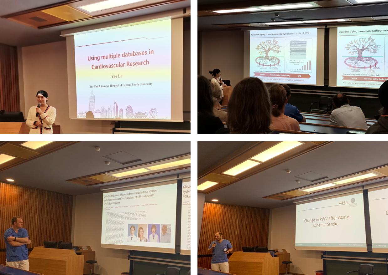 期间,陆瑶教授获邀在因斯布鲁克大学医院进行了“Using multiple databases in Cardiovascular Research”专题学术报告,分享了团队基于多维度数据驱动研究模式在心血管疾病领域的系列研究成果;Stefan教授团队在会上对双方团队合作的研究“Global distributions of age- and sex-related arterial stiffness”进行了解析;Michael Knoflach教授团队也分享了有关急性缺血性卒中后血管老化变化轨迹的研究。讲座最后,陆瑶教授与Stefan教授团队的成员进行了深入互动交流,对“血管老化研究前景”“数据驱动的研究模式”等学术问题进行了详细探讨。