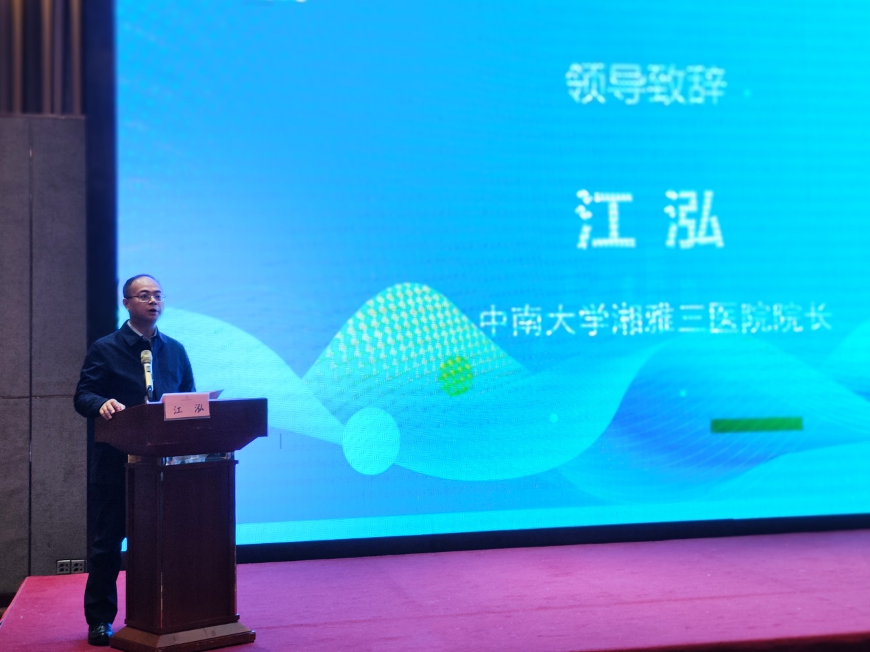 中南大学湘雅三医院院长江泓在开幕式致辞。他代表中南大学湘雅三医院对大会的成功召开表示热烈的祝贺。他指出,湘雅三医院坚持公立医院公益性和国家队医院引领作用,在日间手术、日间医疗的发展方面,作为湖南省医院协会日间手术管理专业委员会的挂靠单位,将借助新门诊楼日间手术中心和日间病房即将启动之机,在湖南省医院协会的带领下,继续做好推动日间手术高质量发展的排头兵。